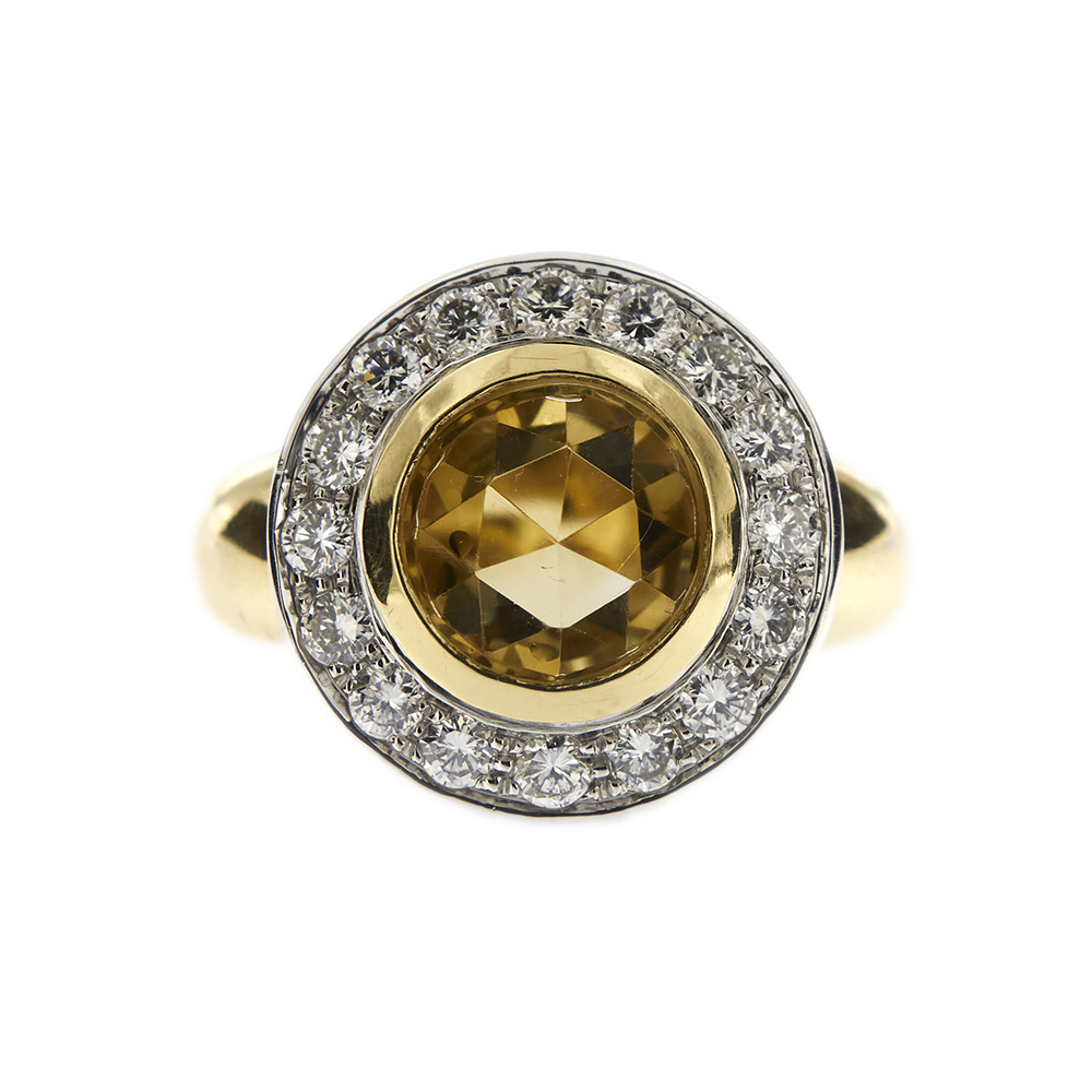 | Gem | Citrine quartz, Diamonds |
